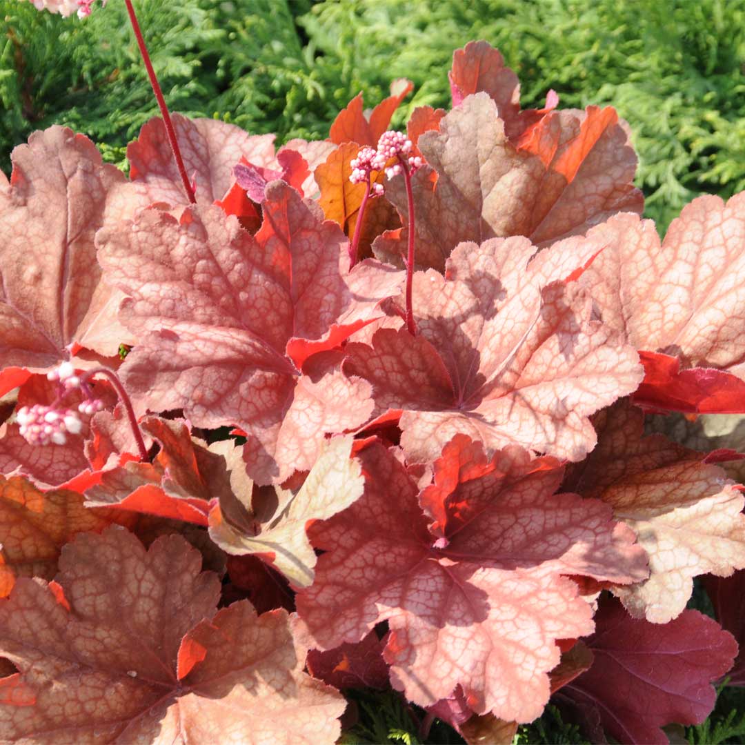 Vivace très décorative, appréciée pour son feuillage coloré en tons de pourpre, caramel ou argent.